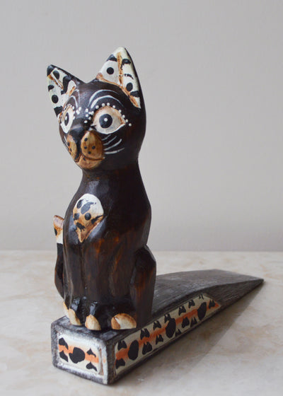 Beautifully carved and hand-painted wooden cat door stop. The purrrrfect gift for the cat lover in your life!
